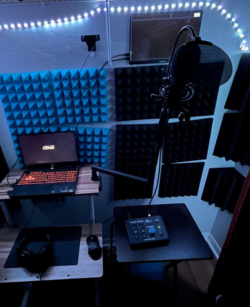 •Sound Treatment: Heavy moving blankets and acoustic wall foamMicrophone